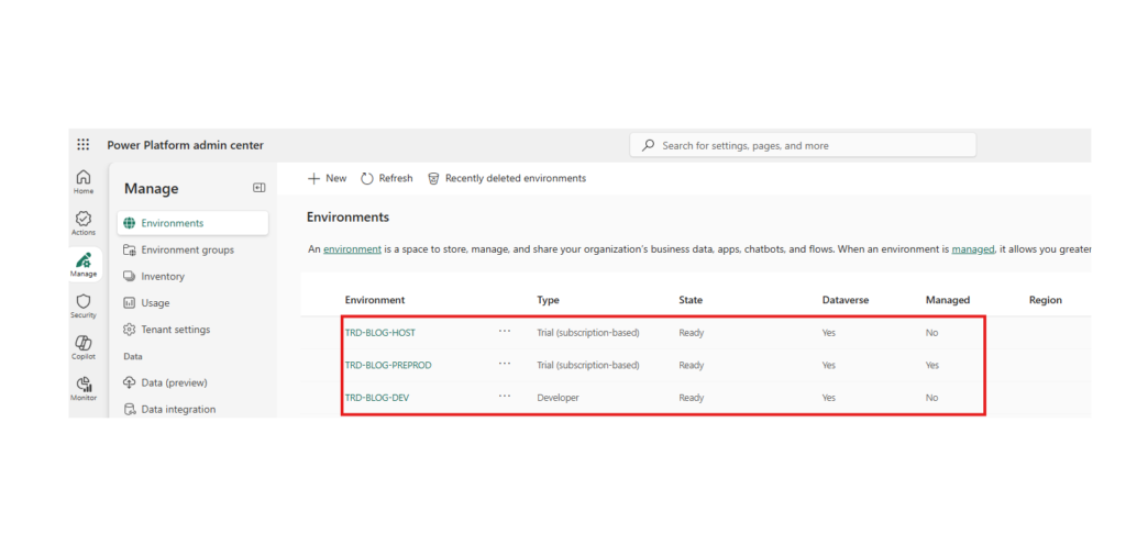 • All target environments used in a pipeline must be enabled as Managed Environments : in our scenario since the Production or Preprod is the only target environment, then it is the one that must be Managed.