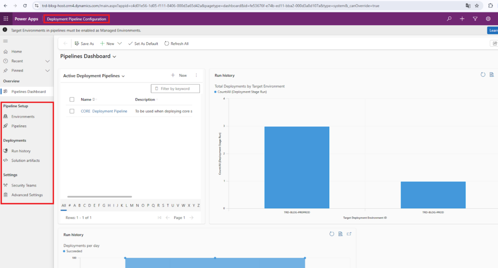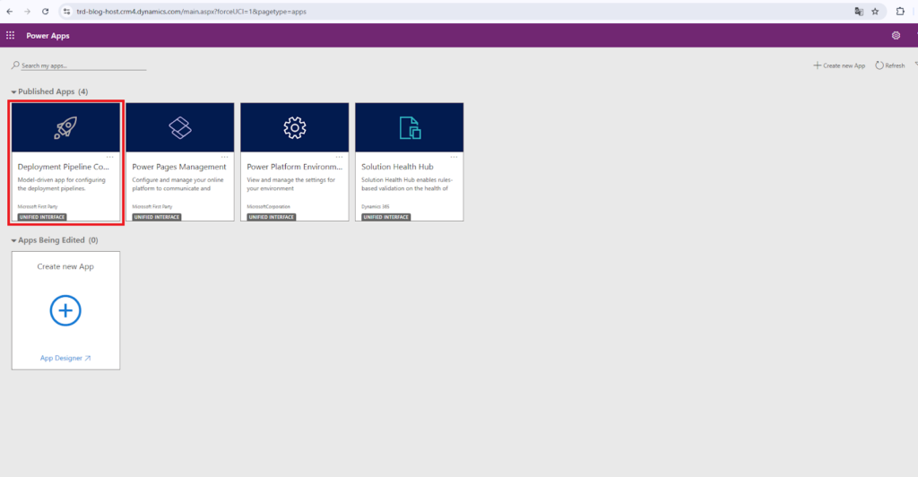 If you select and open URL of the Host environment from Power Platform Admin Center you should be able to see the model driven app Deployment Pipeline Configuration dedicated for ALM with Power Platform Pipelines