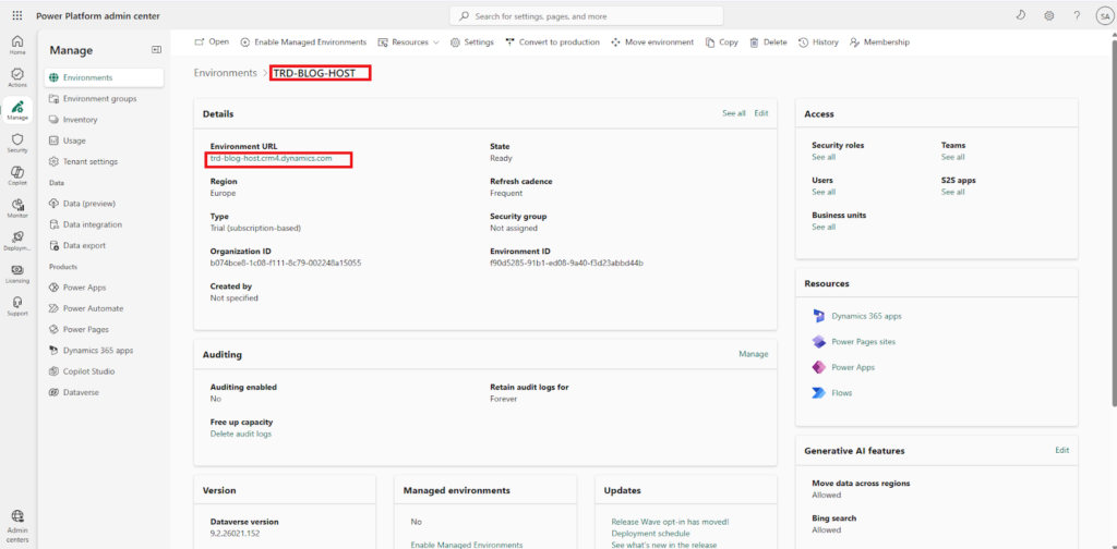 from the Power Platform Admin CenterEnvironments select the Host environment