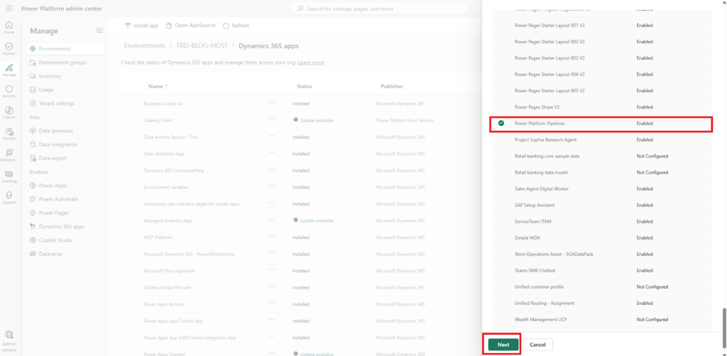 Scroll down select Power Platform Pipelines and click Next button